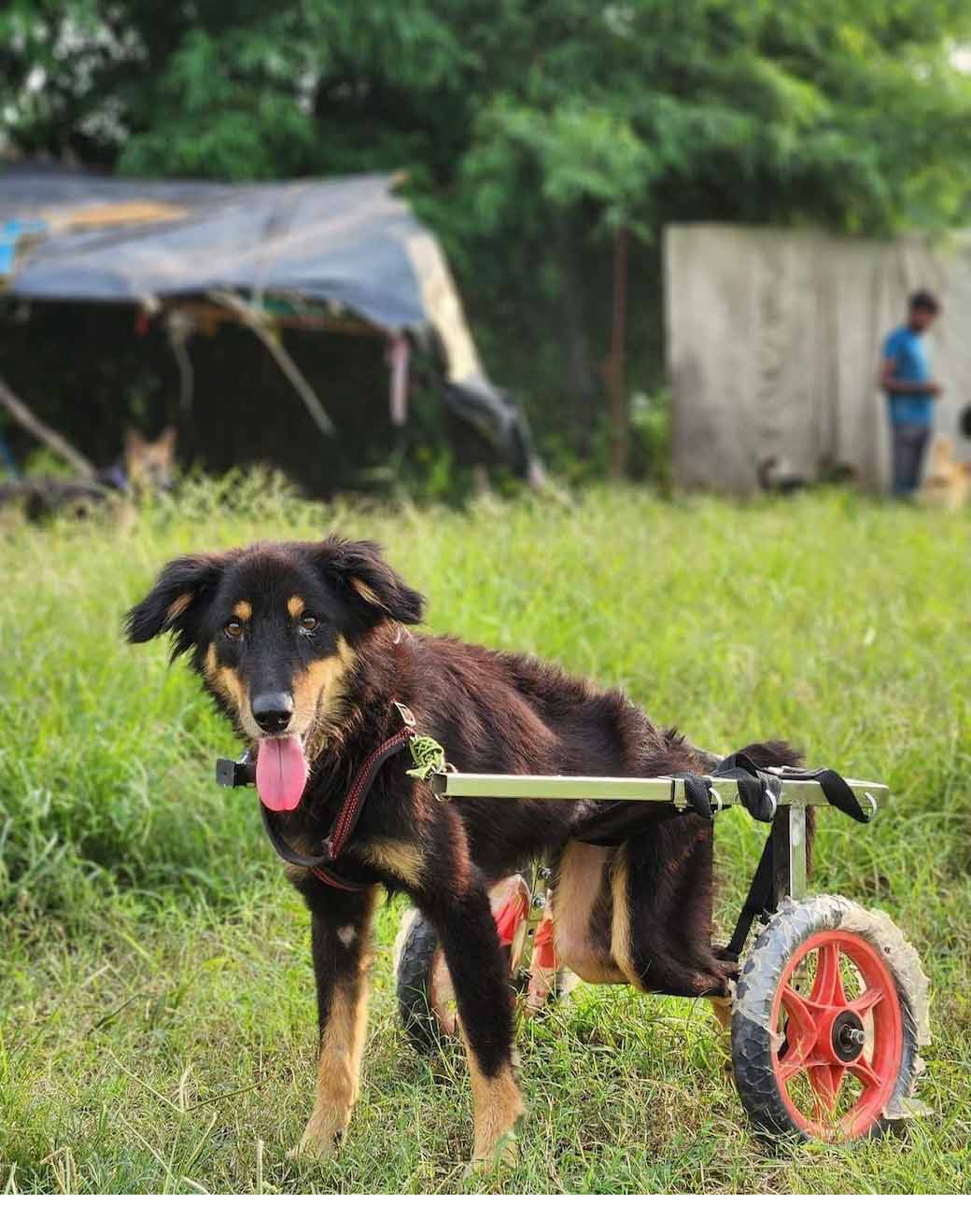 George is a dog who was sadly surrendered by his owners and became disabled after being bitten by other dogs. He was rescued by Mugdha who took him in to her Sanctuary. With the help of Mugdha and other animal lovers, we were able to buy George a wheelchair so now he can enjoy a better life. These donations have helped to buy wheelchairs for many other dogs like George to help them walk and giving them a different life.