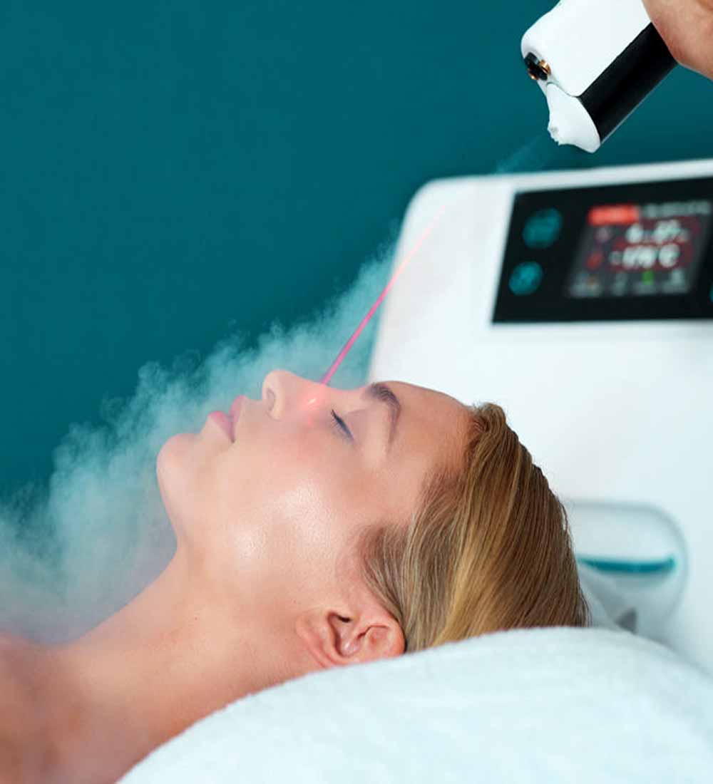At our beauty clinic in Cobham we use The Cryofacial to pump liquid nitrogen onto the face which brightens the skin, tightens pores, and reduces the appearance of age spots. The Cryofacial also boosts collagen production which reduces the appearance of fine lines and wrinkles and gives the skin a glow.